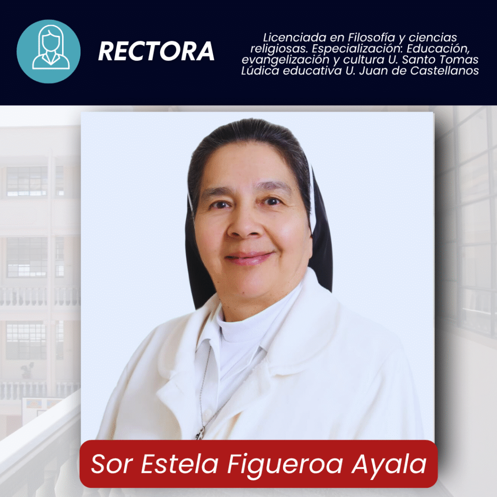 La Rectora es la líder institucional encargada de guiar, inspirar y velar por el cumplimiento de la misión y visión del colegio. Su gestión está orientada a garantizar una educación integral de calidad, basada en valores, principios éticos y en la formación de ciudadanos responsables y comprometidos con la sociedad.